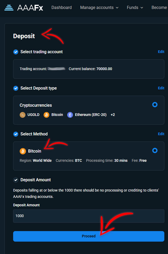 Deposit with AAAFX using cryptocurrency (I use Bitcoin).