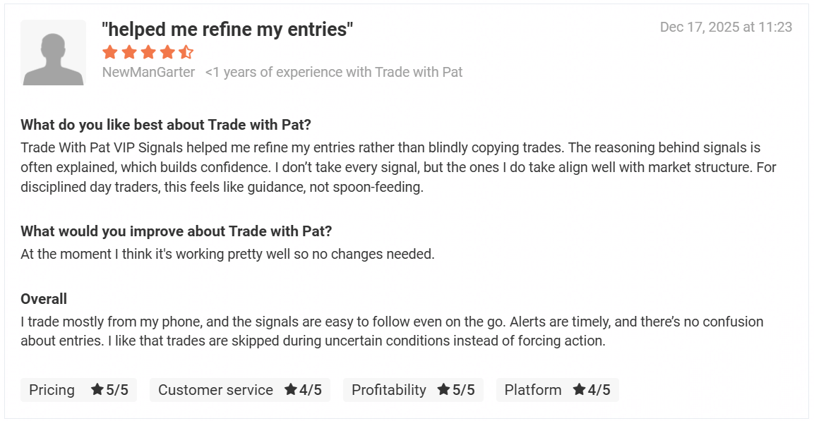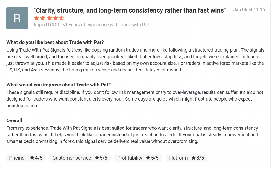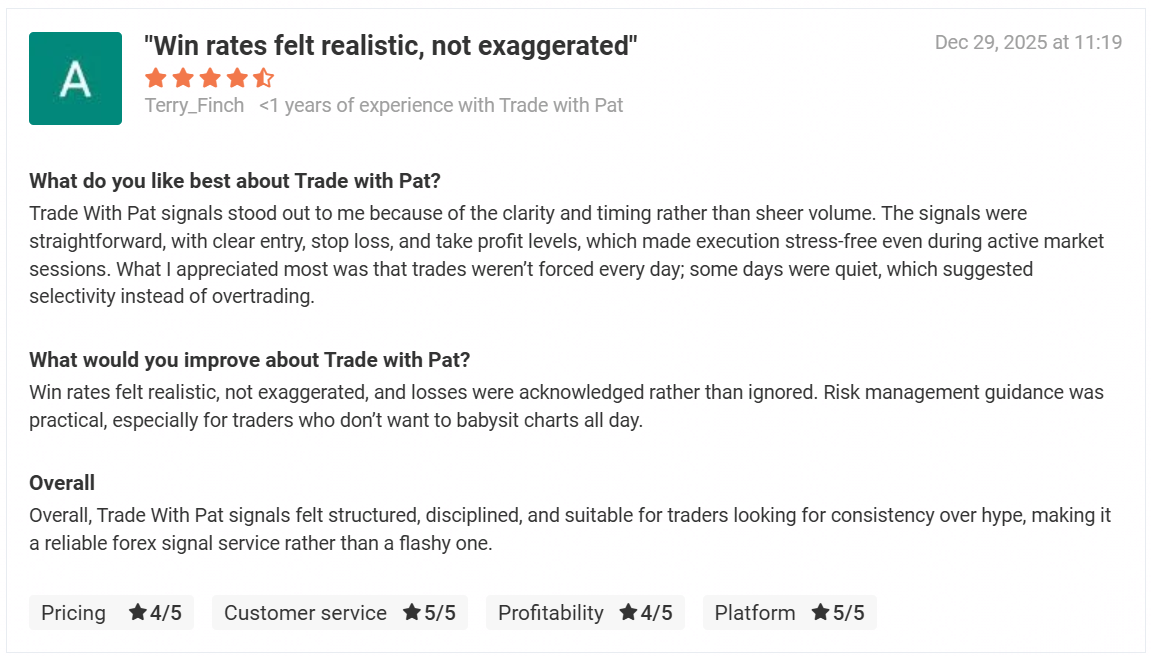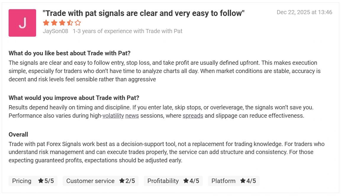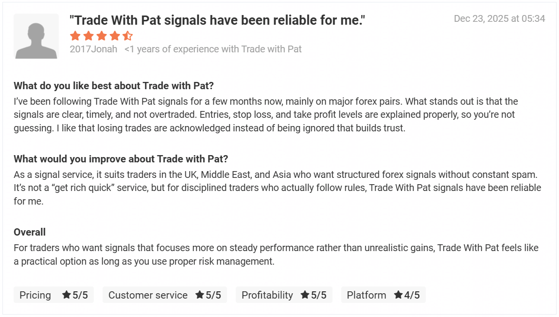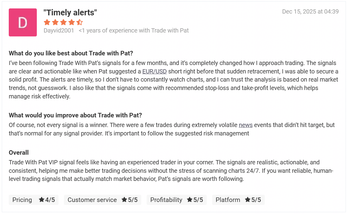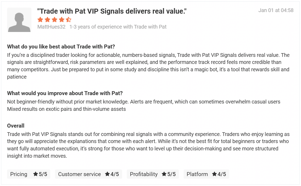 The Trade with Pat VIP (TWP VIP) Signal service is over 5 years in business & still going strong!
